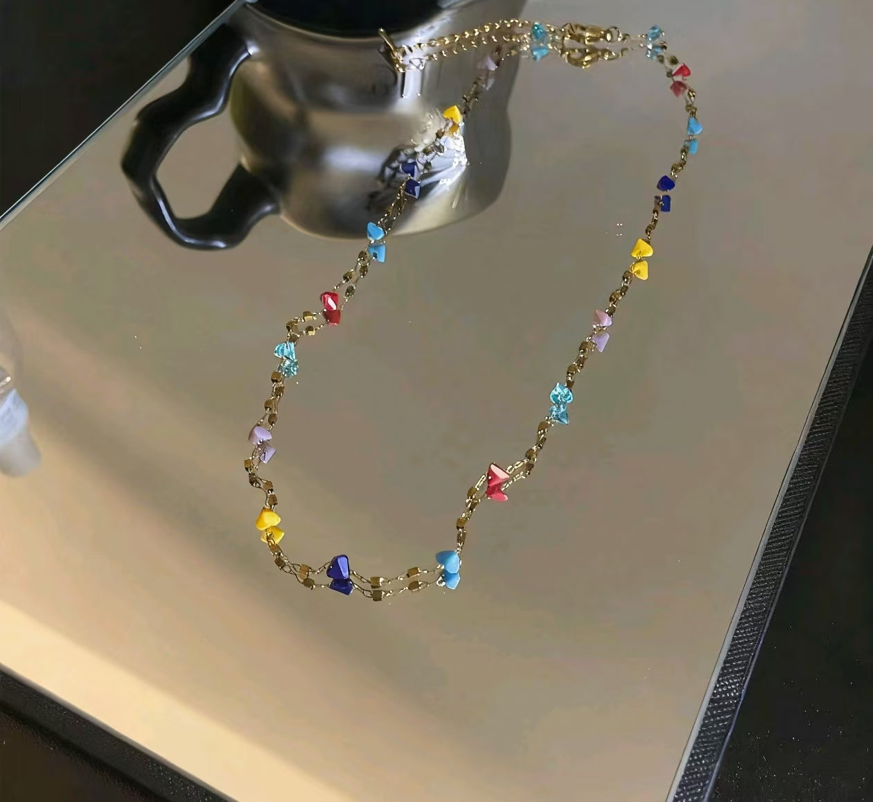 American Colorful Crushed Stone Block Pendant Necklace, Unisex Abstract Geometric Choker Chain